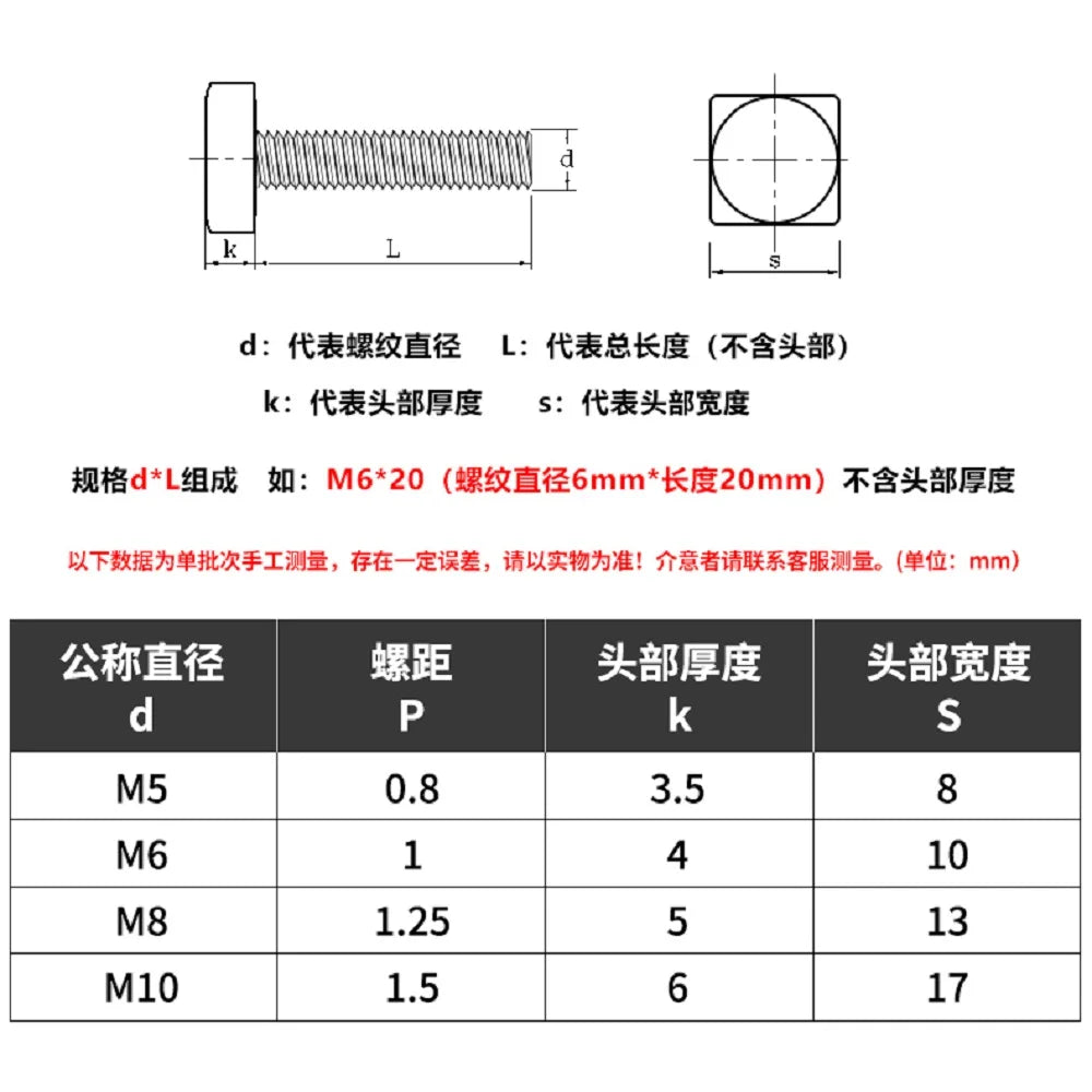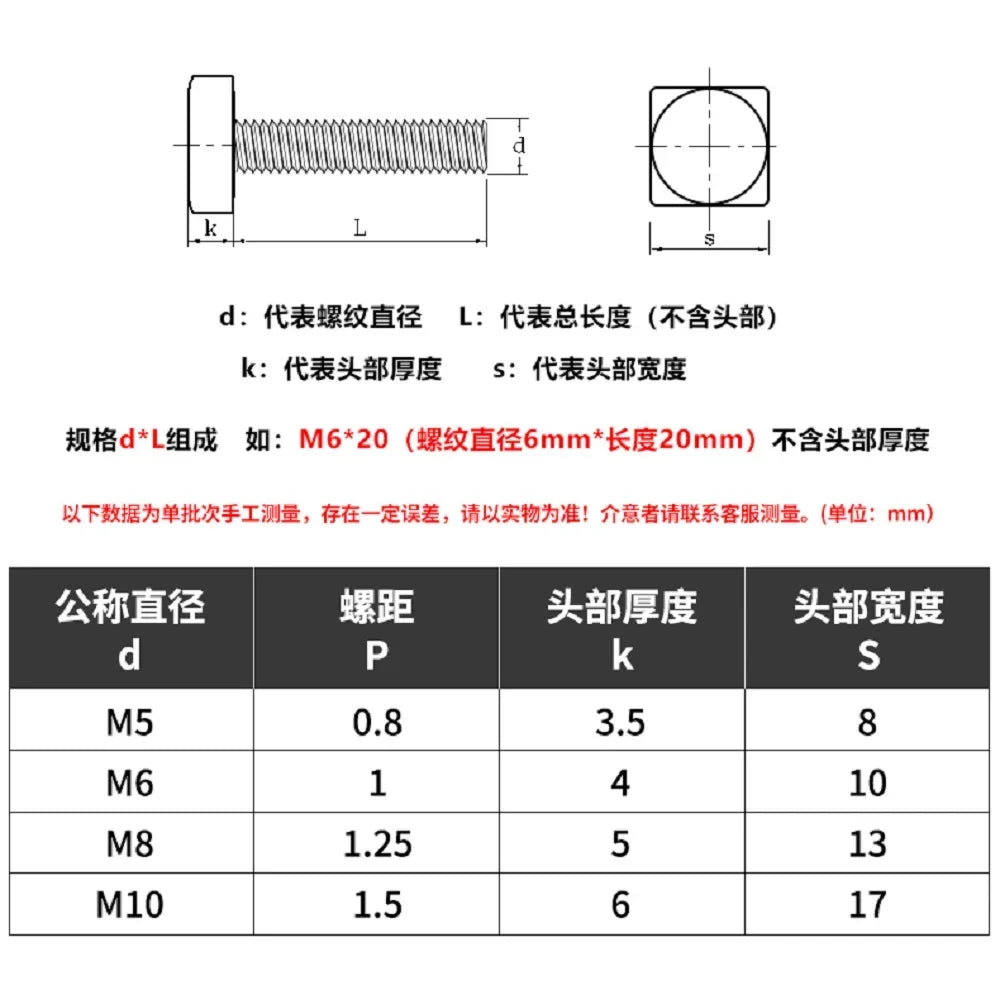 1-10pcs GB35 M5 M6 M8 M10 M12 304 Stainless Steel Square Head Screws Bolts