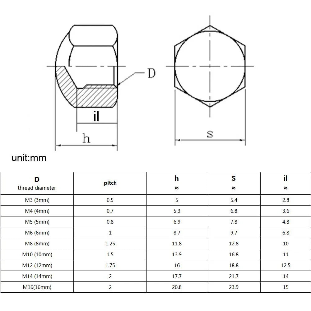 1-20pcs M4 M5 M6 M8 M10 M12 M16 M20 DIN917 Brass Hex Hexagon Short Low Thin Cap Acorn Nut Cover Blind Nut
