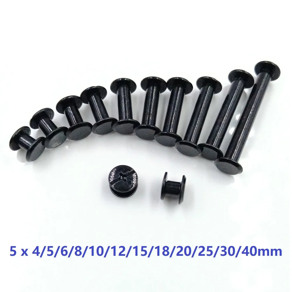 100 sets M5*4/5/6/8/10/12/15/18/20/25/30 Black Plated Account Books Screw , Snap Rivet Chicago Screws, Book Butt Binding Nails