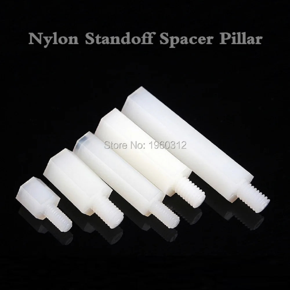 1000pcs M2/2.5/3/4*L+6 Male To Female Thread Black Plastic Nylon Hexagon Hex Standoff Spacer Pillars