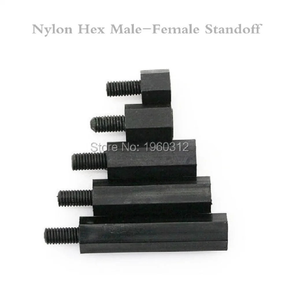 1000pcs Male To Female Thread M2/2.5/3/4*L + 6mm Black Plastic Nylon Hexagon Hex Standoff Spacer Pillars