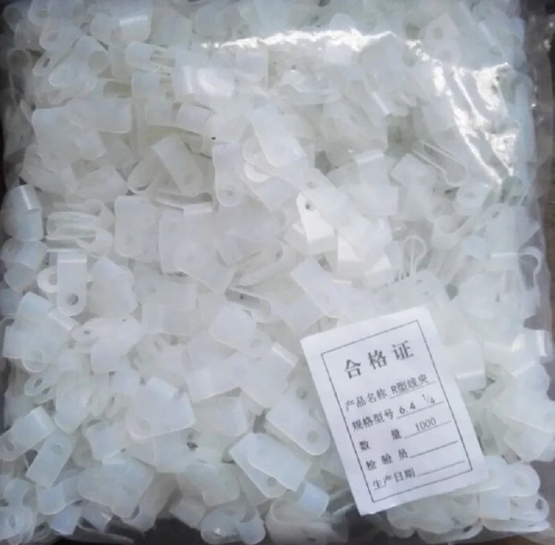 1000pcs Nylon White Wire Cable Hose P Type R Clamp Clips Clip C 6.4mm 1/4"