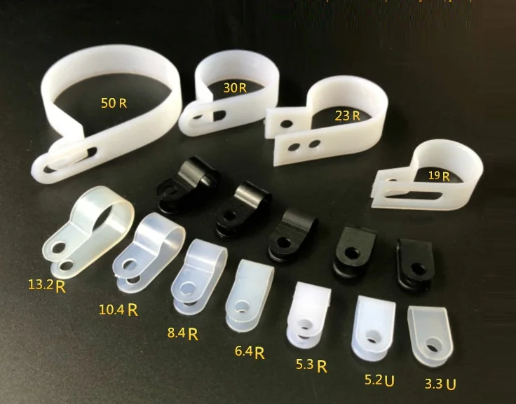 1000pcs Nylon White or Black Size 6.4mm 1/4" Wire Cable Hose P Type R Clamp Clips Clip ,We have other Size C= 3.3 5.2 5.3 6.4 8.4 10.4 13.2 16.2 19.2 25 30 50mm