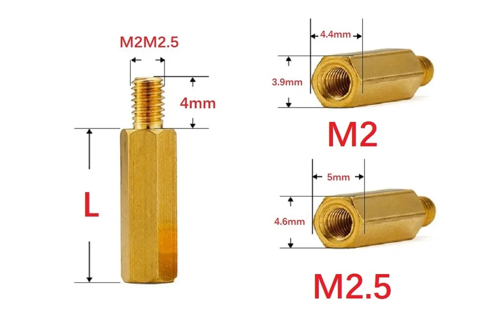 100pcs brass standoff M2 M2.5 xL +Thread 4mm Male Female Brass Standoff Spacer Hexagonal Stud PCB Computer PC Motherboard Spacer
