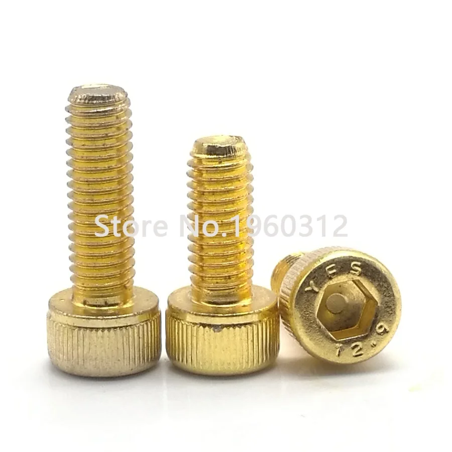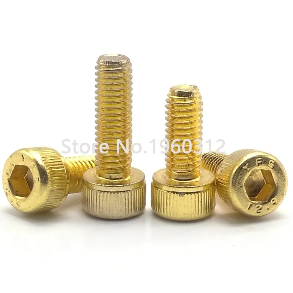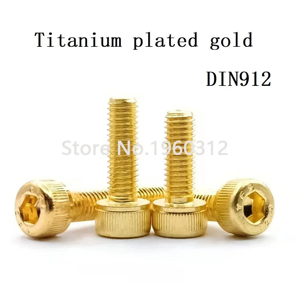 10PCS Titanium Plating Gold M2 M2.5 M3 M4 M5 M6 L=4-30mm 12.9 Grade Screw DIN912 Hexagon Hex Socket Head Cap Allen Bolt