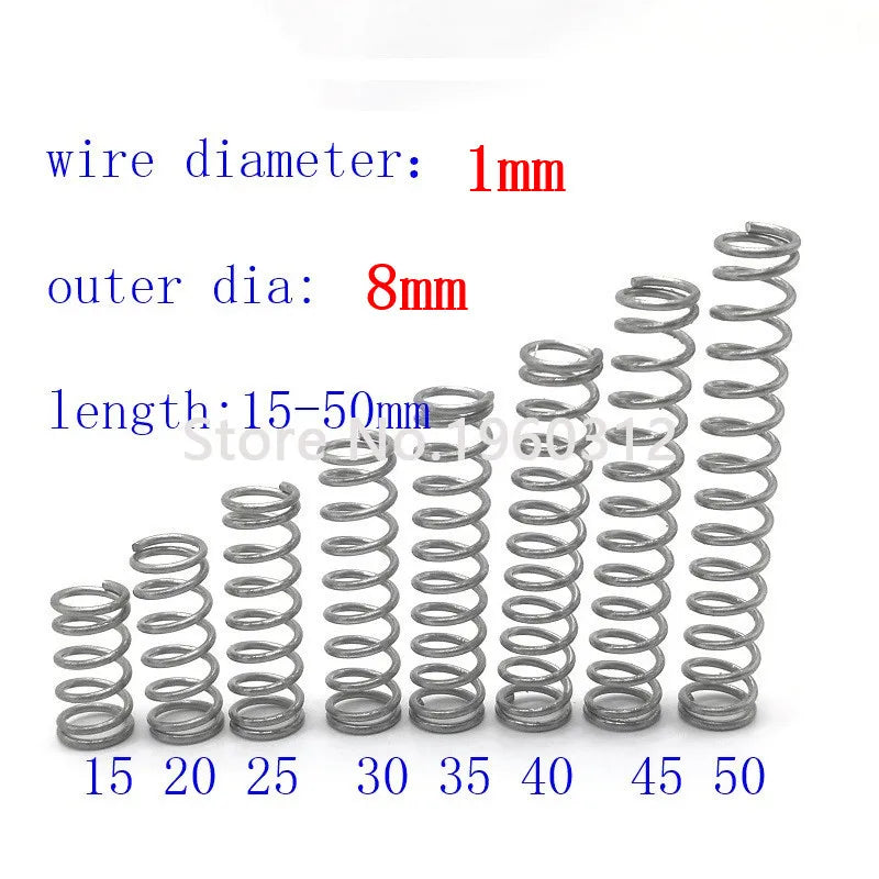 10pcs wire diameter = 1mm *OD 8mm *L Stainless Steel Micro return Small Compression anti corrosion extension springs L=15-50