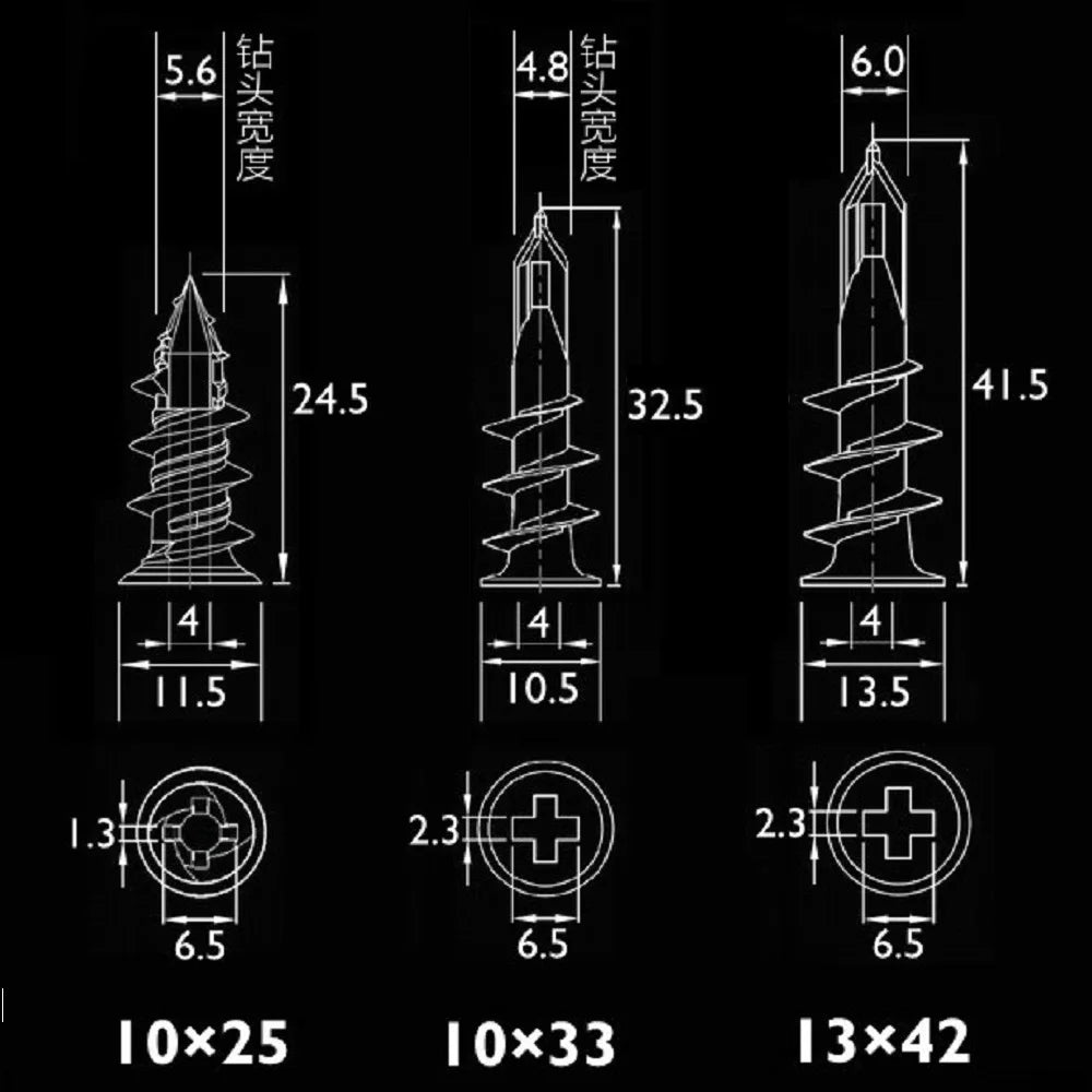 10set Plasterboard Anchor 10x25/10x33/13x42 Drywall Nylon Ribbed Anchor Self Drilling Wall Drywall Plastic Nylon Anchor