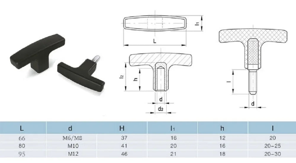 1pcs 304 stainless steel Plastic T-Handle Slotted Handle Plastic Head Adjustable Handle Screw M6-M12