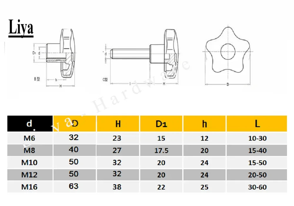 1pcs Five-star handle stainless steel hand screw, plum blossom five-corner adjustment handle bakelite hand screw nut