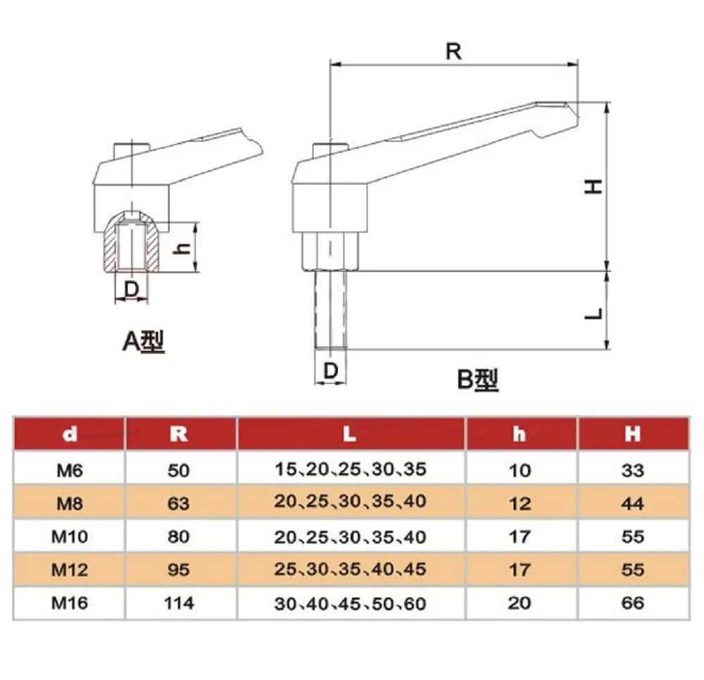 1pc M4 M5 M6 M8 M10 M12 M16 Adjustable Handle Lever Clamping Handles Thread Metal Knob Machinery Tools