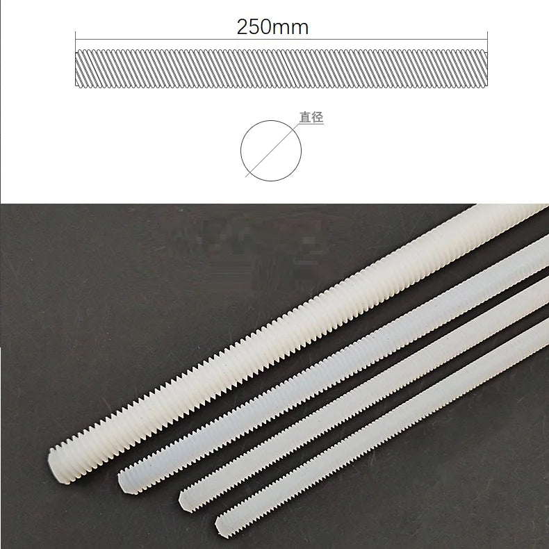 2-4pcs M4 M5 M6 M8 M10 M12 M16 M18 Nylon plastic Fully threaded rod bar stud length =250mm