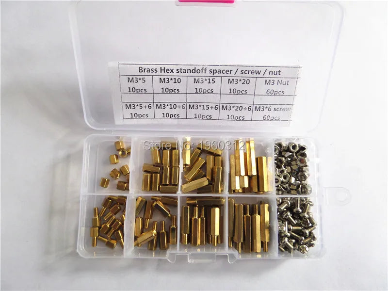 200pcs M2 M2.5 M3 PCB Hex Male Female Threaded Brass Hex Spacer Standoffs / Screw / Nut Assortment Set kit