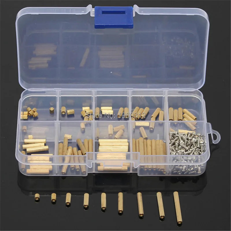 270Pcs/Set M2 3-25mm Male to Female / Female to Female Round knurled Brass PCB Standoff Spacer Screw Nut Assortment Kit box