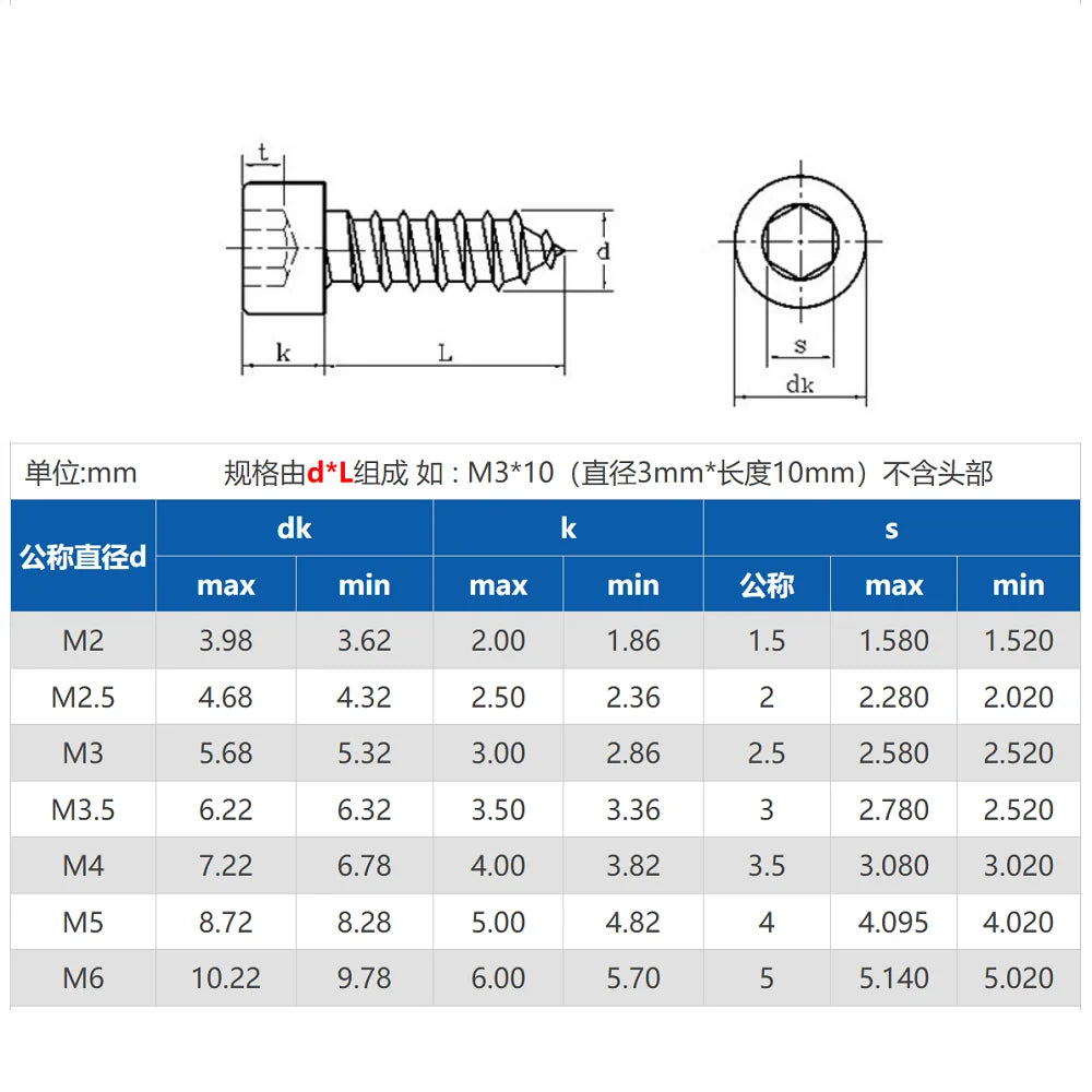 5-20pcs M2M3M4M5M6M8 Golden plated cylindrical inner hexagon self-tapping screw speaker speaker screw cup head wood tooth screw