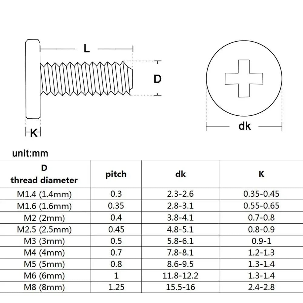 5-50pcs CM M2 M2.5 M3 M4 M5 M6 A2 304 Stainless Steel Cross Phillips Ultra Thin Super Low Flat Wafer Head Screw Bolt for Laptop