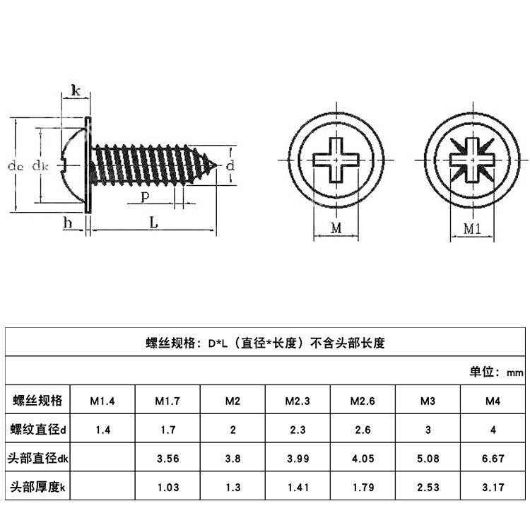 PWA Zinc Plated Hard Cross Round Head Padded Self-Tapping Screws Pan Head Meson Screws M1.7 | M2 | M3 | M4
